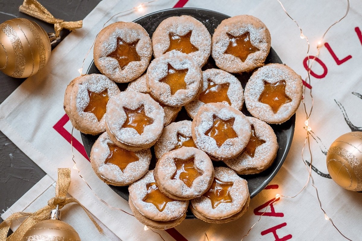 I Linzer Augen sono biscotti natalizi classici e, tra l’altro, bellissimi. La loro storia risale all’Austria e il loro nome si riferisce alla famosa torta Linzer, un dolce friabile con mandorle e marmellata. I biscotti hanno una caratteristica forma “a finestra”: sono composti da due dischi friabili (o stelline), di cui quello superiore è ritagliato con un piccolo foro, un cuoricino o una stellina. Dopo la cottura, i due dischi vengono uniti con uno strato di densa marmellata di lamponi o ribes, che traspare appetitosamente attraverso il foro. Sono burrosi, delicati e facili da preparare, ideali per accompagnare il tè natalizio. Nella nostra ricetta i biscotti hanno un sapore leggermente diverso: sono alla cannella invece che alle mandorle.