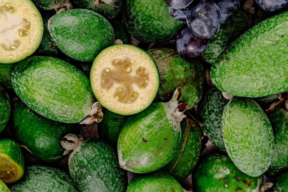 Feijoa – bacche esotiche, con un sapore che ricorda un mix di mela, ananas e… Ha il sapore di un mix di mela, ananas e banana. È ricca di fibre e ferro, dopo averla mangiata l’intestino funziona come dovrebbe