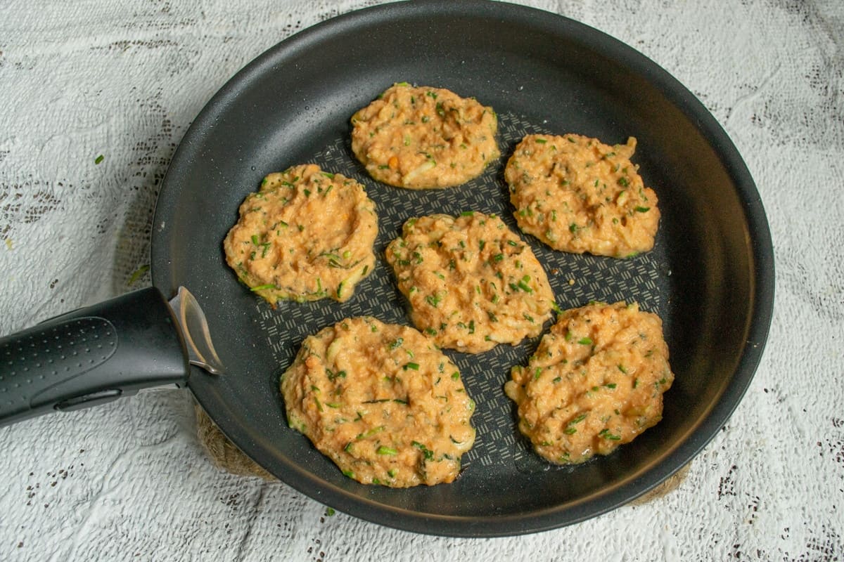 Le lenticchie rosse sono prive di buccia, quindi non formano grumi nelle frittelle. Durante la cottura diventano cremose e arricchiscono meravigliosamente la consistenza delle frittelle. Inoltre, poiché contengono molte proteine, il tutto risulta più compatto e non si sbriciola. Non devo più aggiungere pangrattato, farina di frumento o di patate, che spesso vengono utilizzati per addensare l’impasto.
