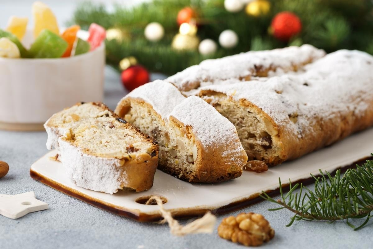 Tutti conosciamo il panettone, ma avete mai sentito parlare dello stollen? A Natale, le tavole si vestono a festa per accogliere lo stollen o Christstollen, un dolce ricco di frutta, spezie e burro, ricoperto da un generoso strato di zucchero a velo, che viene servito come dessert per celebrare queste festività. Con la sua curiosa forma allungata e con una piega al centro, vuole ricordare il Bambino Gesù avvolto nelle sue fasce. Sebbene esistano molte versioni diverse di questa ricetta dolce, alcune caratteristiche non cambiano mai. L’impasto dello stollen deve essere denso e umido, ripieno di frutta secca e candita e aromatizzato con liquore e spezie. È la somma di tutto ciò che ne determina il sapore e l’aroma eccellenti, virtù che si aggiungono al fatto che è un pane abbastanza facile da preparare, che non richiede lievito madre né lunghi giorni di lievitazione o farine speciali. Ha tutte le carte in regola per avere successo e diventare il tuo nuovo dolce natalizio preferito.